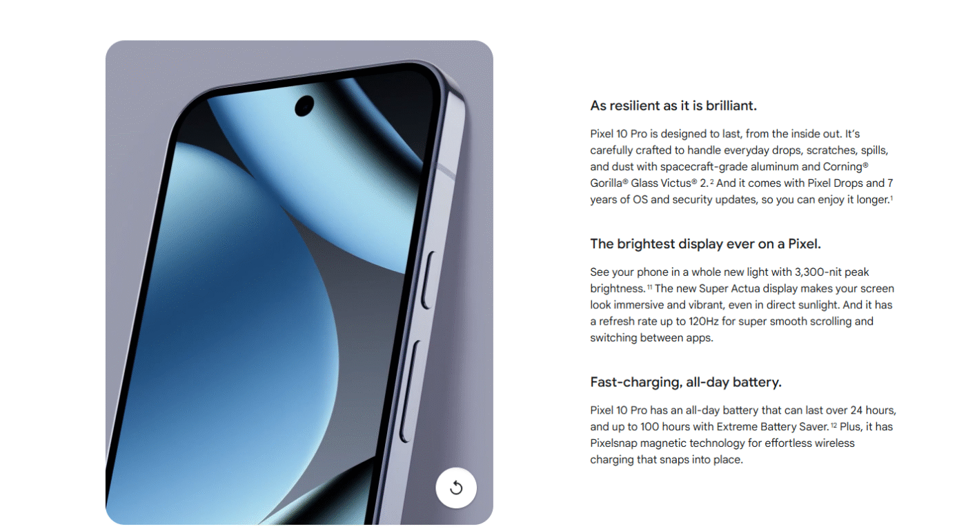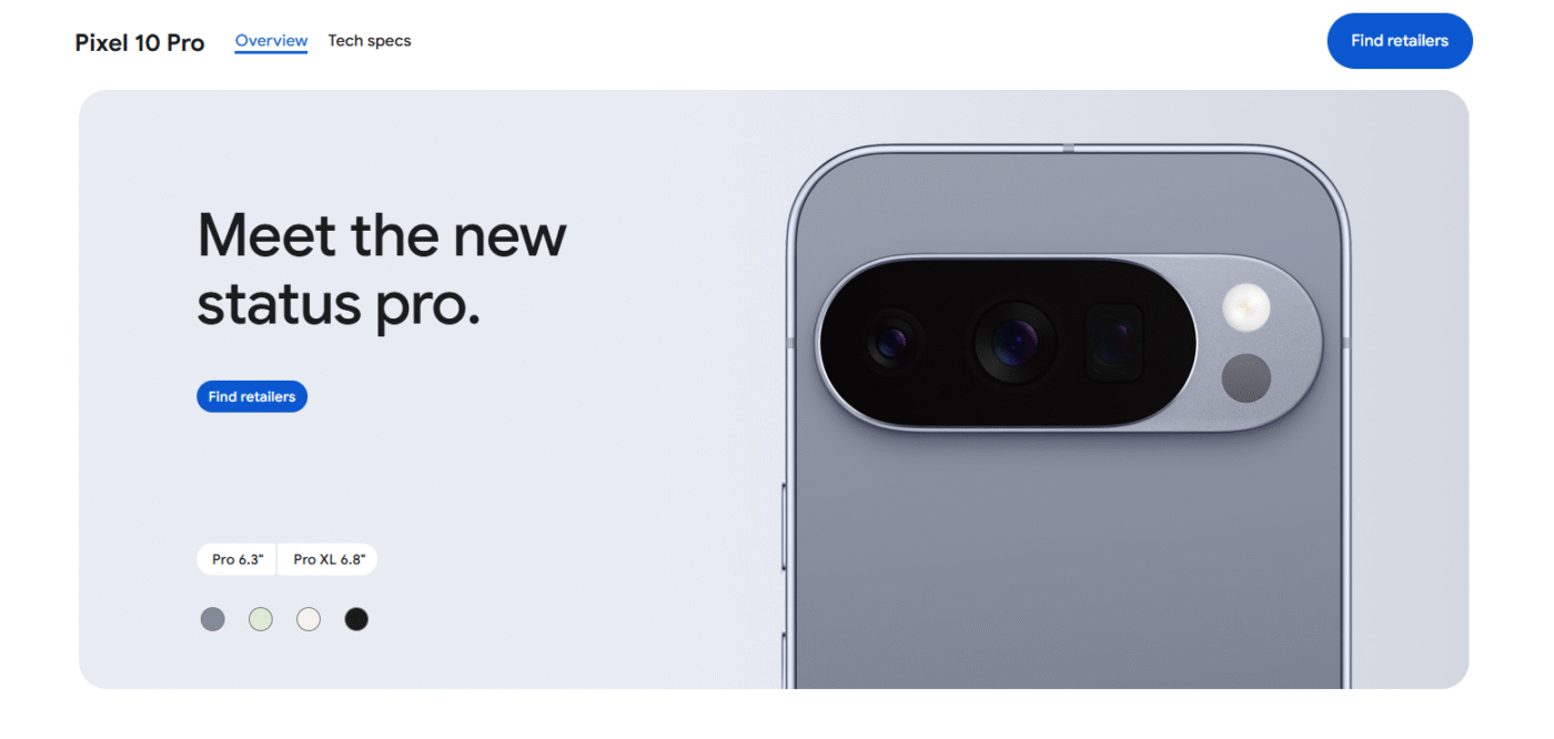 Storage | PIXEL 10 – 128GB, PIXEL 10 – 256GB, PIXEL 10 PRO – 128GB, PIXEL 10 PRO – 1TB, PIXEL 10 PRO – 256GB, PIXEL 10 PRO – 512GB, PIXEL 10 PRO XL – 256GB, PIXEL 10 PRO XL – 512GB, PIXEL 10 PRO XL -1TB |