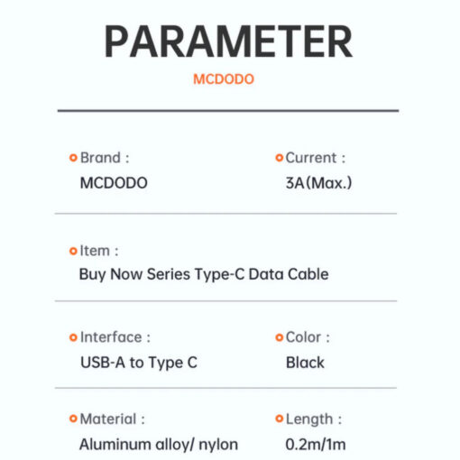 Cable Material: Nylon Braided Cable