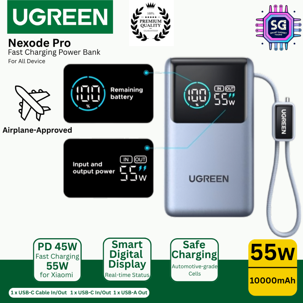UGREEN NEXODE PRO FAST CHARGING POWER BANK 55W 10K