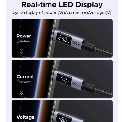 ⚠️ Video Output: Most standard 240 W PD cables do not support video/DisplayPort Alt Mode. High-spec USB4-rated variants are required for that.