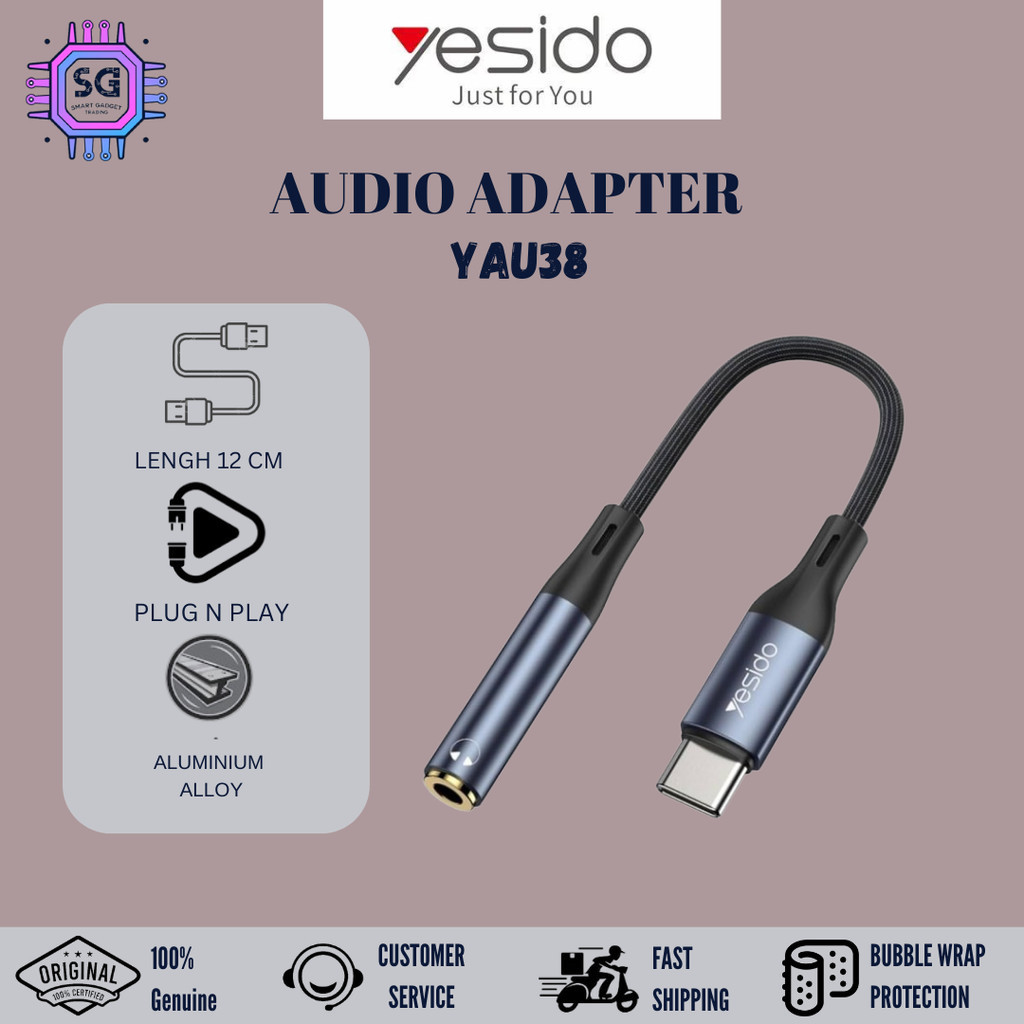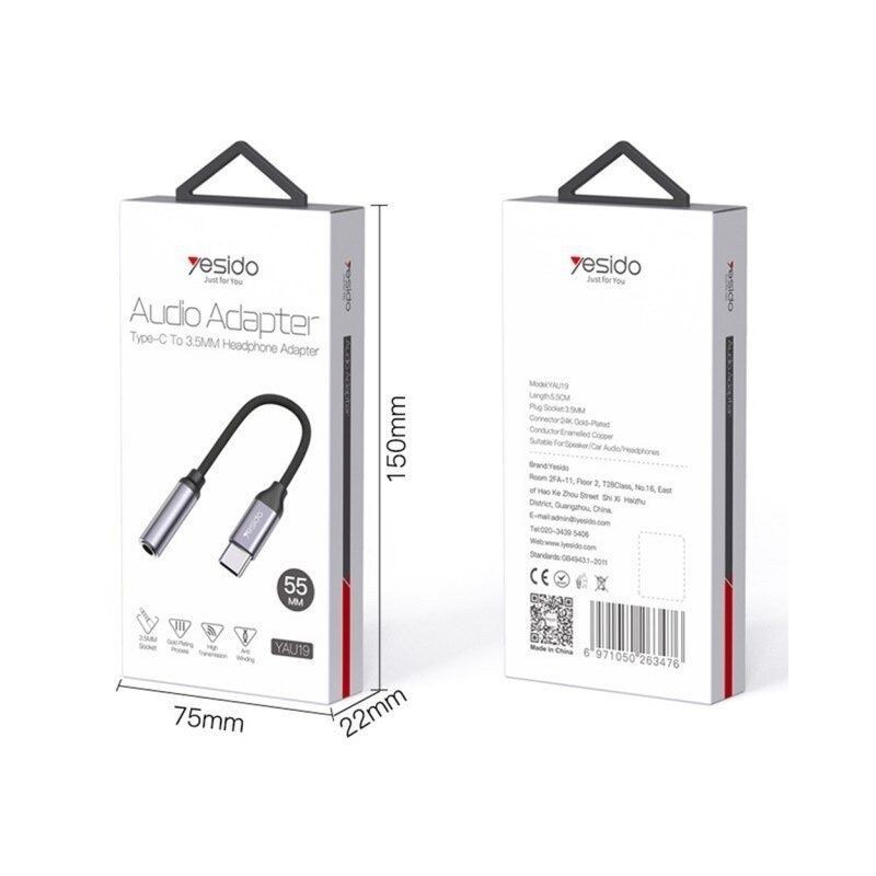 YESIDO Audio Adapter (Type C to 3.5MM Headphone Adapter) Specifications:- Model: YAU19 Length : 5.5CM Plug Socket : 3.5MM Connector : 24K Gold Plated Conductor : Enamelled Copper Suitable for Speaker , Car Audio , Headphone ✔️Gold Plating Process ✔️3.5MM Socket ✔️High Transmission ✔️Anti Winding